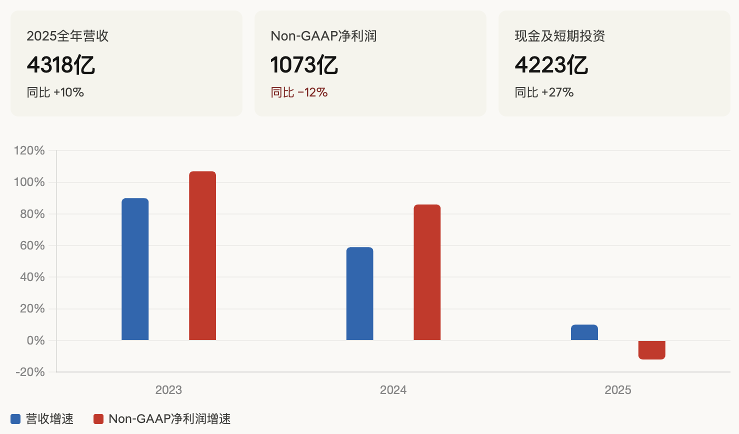 去年4月推出的千亿扶持,本质是守势。减佣金、送流量、降费用,说白了是平台拿钱稳商家信心。代价已经在财报上体现出来了,2025全年营收增速降至10%,净利润同比下降12%。