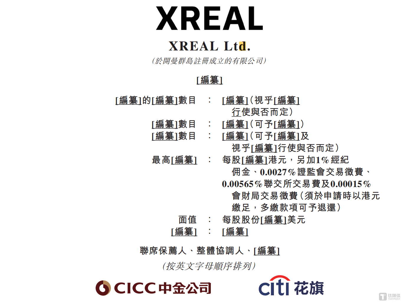 4月1日晚间,AR眼镜公司XREAL正式向港交所提交上市申请书,冲刺全球AR眼镜第一股,联合保荐人为中金和花旗。