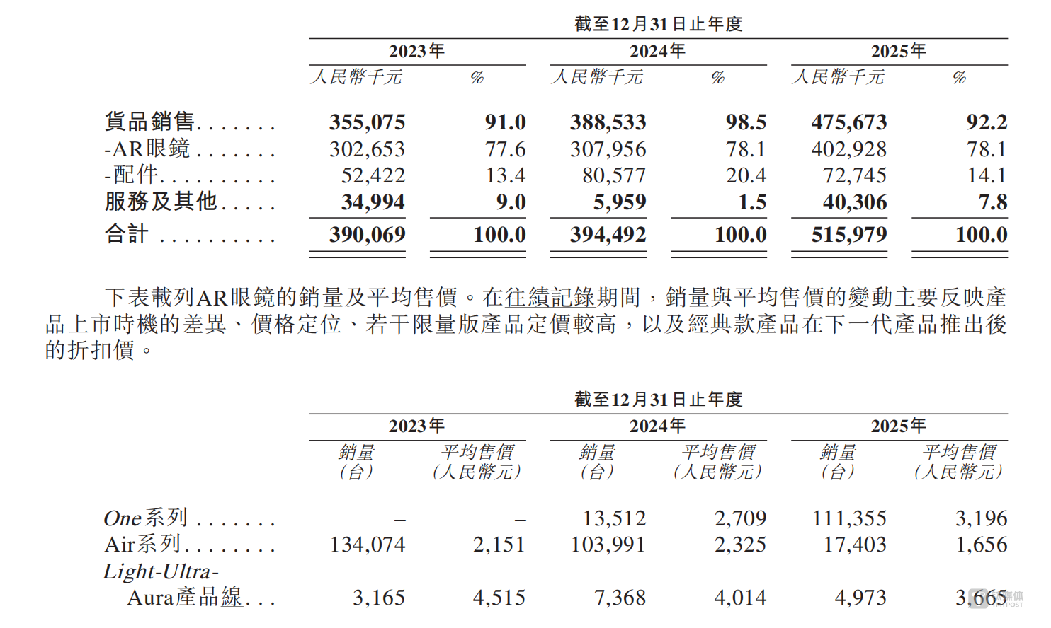 除消费级产品外,XREAL亦向企业客户提供技术开发服务。依托在AR光学、端侧协处理器、硬件工程及系统集成方面的专业能力,支持企业客户针对特定应用场景定制AR相关产品,服务范围包括光学模组设计、硬件开发、软件系统集成及AR应用场景定制。