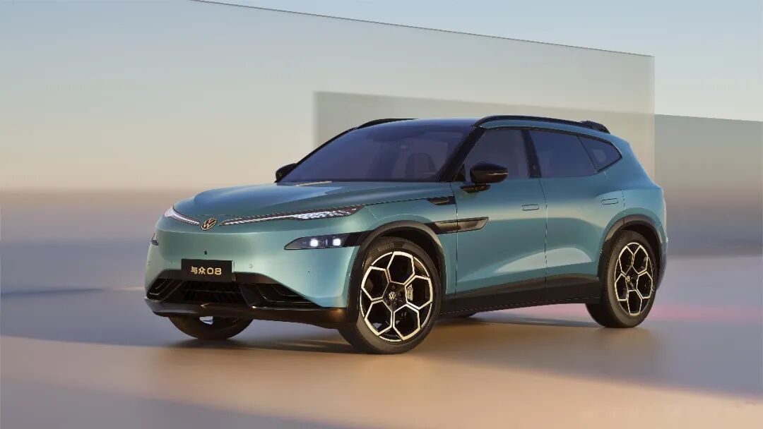 与众08定位全尺寸纯电SUV,车身尺寸5000/1954/1672mm,轴距3030mm。它也是大众品牌首款基于800V高压SiC平台打造的纯电车型,全系搭载宁德时代电池,最高续航超700公里。