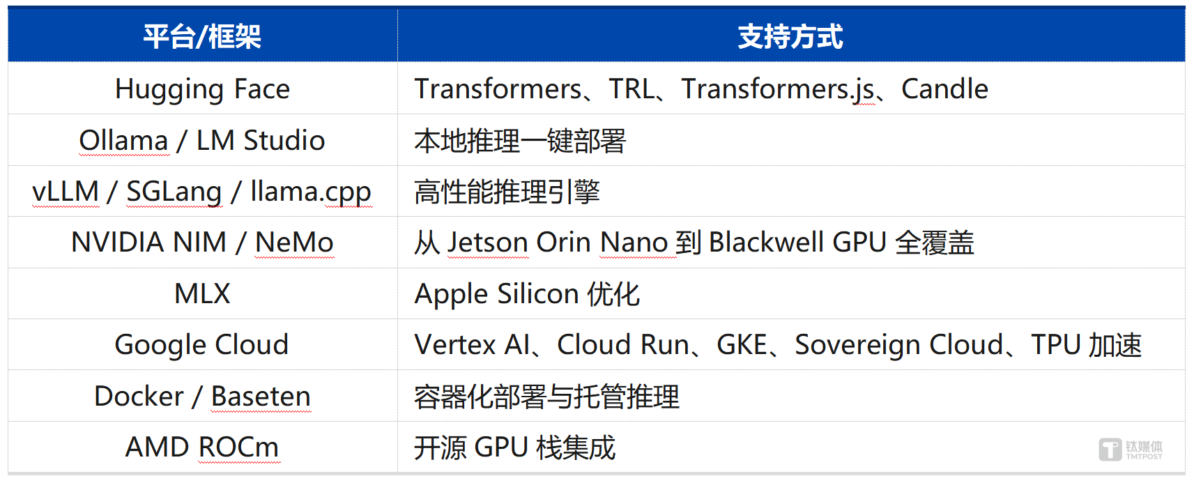 在发布首日,Gemma 4就获得了主流AI工具链的全面支持,这在开源模型发布史上并不多见: