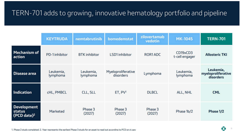 而随着TERN-701的加入,默沙东在血液瘤赛道又落一子。正如公司在交易会上所阐述的:“此次收购依托我们在肿瘤学领域的深厚专业知识,进一步强化并完善了不断拓展的血液学产品管线。该管线作为肿瘤学业务部门的重要组成部分,具有巨大的未来商业化潜力。”