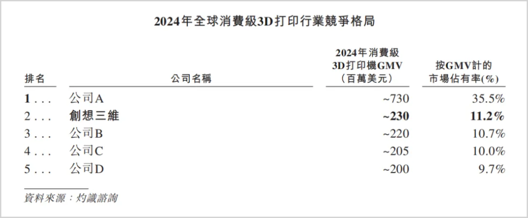 尽管赛道前景一片大好,但竞争却日趋激烈。据灼识咨询研究,2024年全球消费级3D打印市场集中度较高,按GMV(商品交易总额)计算,包括拓竹科技、创想三维在内的前四大玩家市场份额合计超过了60%。