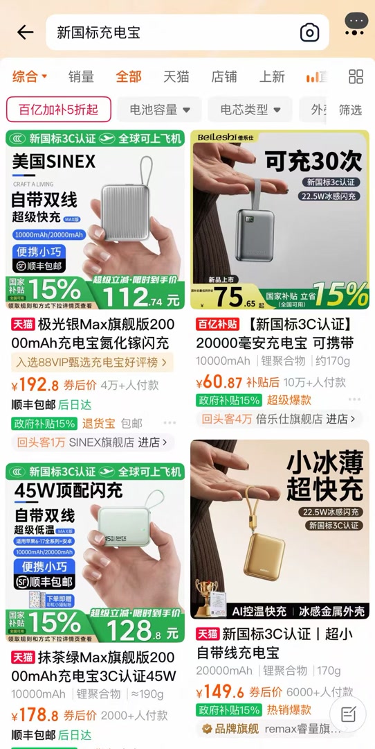 “新国标”发布后,市场迅速响应。记者4月3日下午浏览电商平台发现,多家品牌已将“新国标3C认证”作为突出卖点。安克称已推出两款通过整机测试的新品,磁吸充电宝和自带线充电宝,均搭载自研“智能盾”系统,实现电池信息透明可追溯。OPPO也宣布即将发布首批符合新国标的移动电源,已通过针刺、过充等强制项目检测。