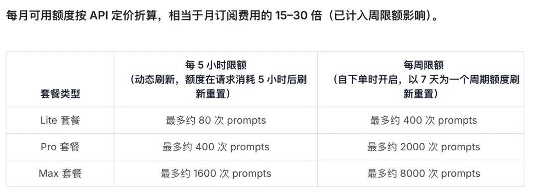 目前国内其他厂商主流的套餐,都设置了按小时或按周的请求次数限额。