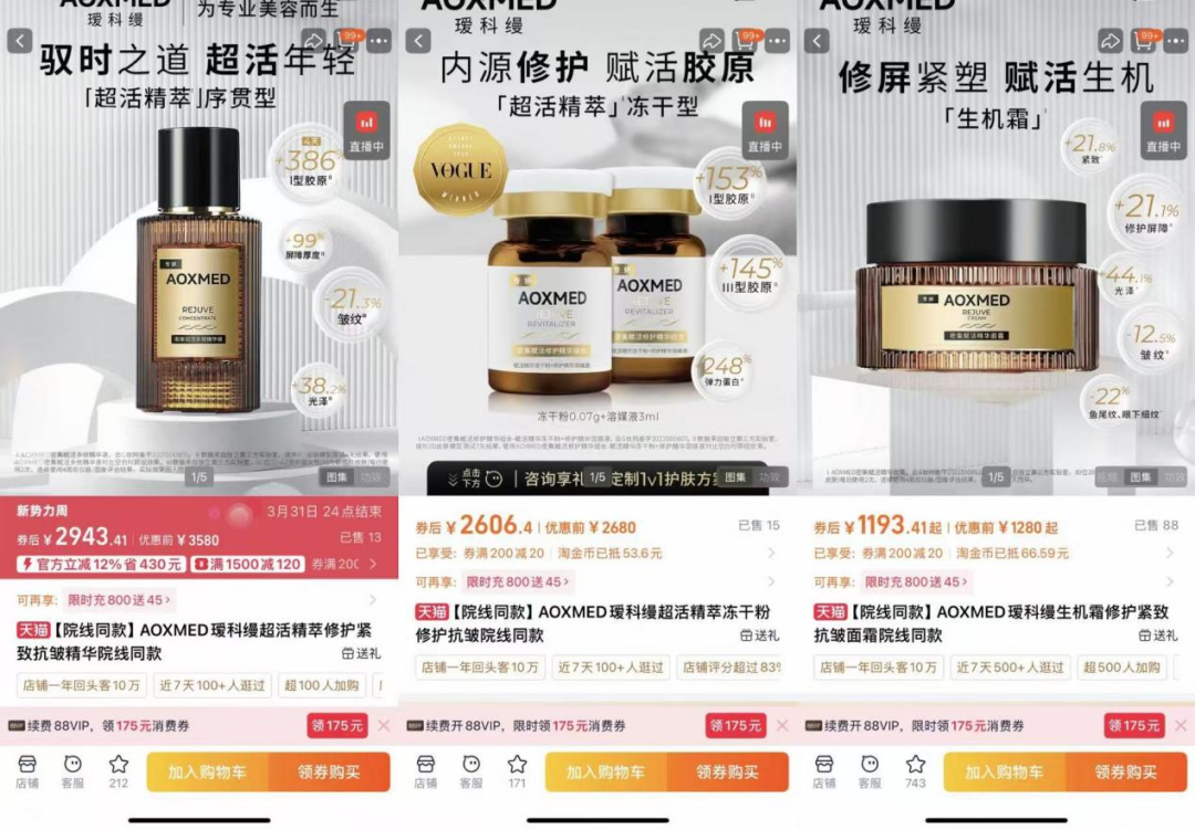 与其他品牌停留在传统护肤品业务的基础上推出医美围术期相关单品的策略不同,瑷科缦讲述了一个更宏大的品牌叙事:将医美围术期护理与日常高端抗衰结合,打造院线级专业护理+家庭场景长效抗衰的双轮驱动模式。