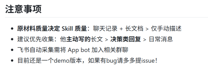 同事.Skill在项目说明里写得很清楚,需要把同事的飞书消息、钉钉文档、邮件喂进去。