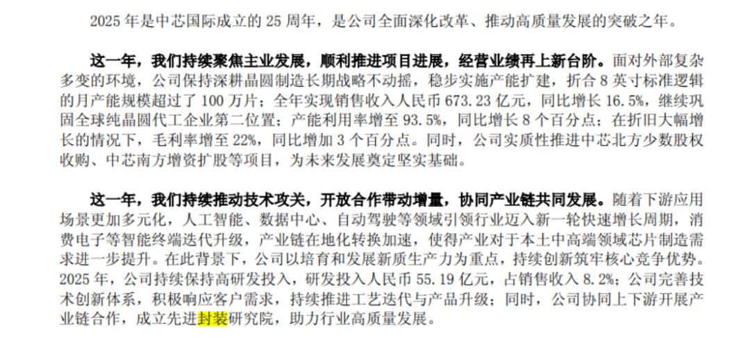 长期以来,半导体产业链遵循着“设计-制造-封测”的清晰分工,晶圆代工厂专注前道工序,封测厂负责后道工序。然而,随着摩尔定律逼近物理极限,这一界限正在被彻底打破:中芯国际在2025年年报中披露成立先进封装研究院。