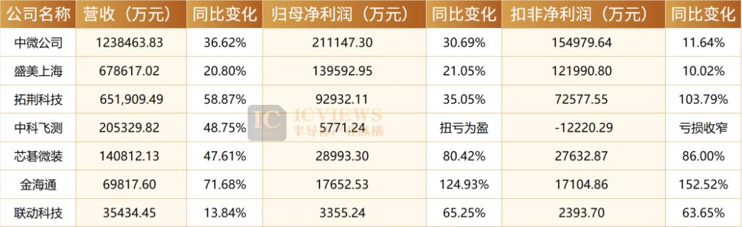 盛美上海营收67.86亿元,同比增长20.80%,归母净利润13.96亿元,同比增长21.05%,扣非净利润12.2亿元,同比增长10.02%。营收增长主要原因是中国大陆市场需求强劲,其凭借技术差异化优势,积累了充足订单储备;销售交货及调试验收工作高效推进,有效保障了经营业绩的稳步增长;深入推进产品平台化,满足了客户的多样化需求,市场认可度不断提高。