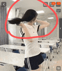 这时再观察模特的表情、身材,以及背后的教室背景,我们似乎很容易看出,视频同样来自AI生成。