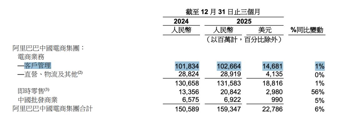 阿里巴巴2025年前三季度客户管理收入同比增速基本维持在10%左右,四季度收入为1026.64亿元,同比增长1%,几乎与去年同期持平。2025全年的客户管理收入为3419.20亿元,同比增长8.60%。