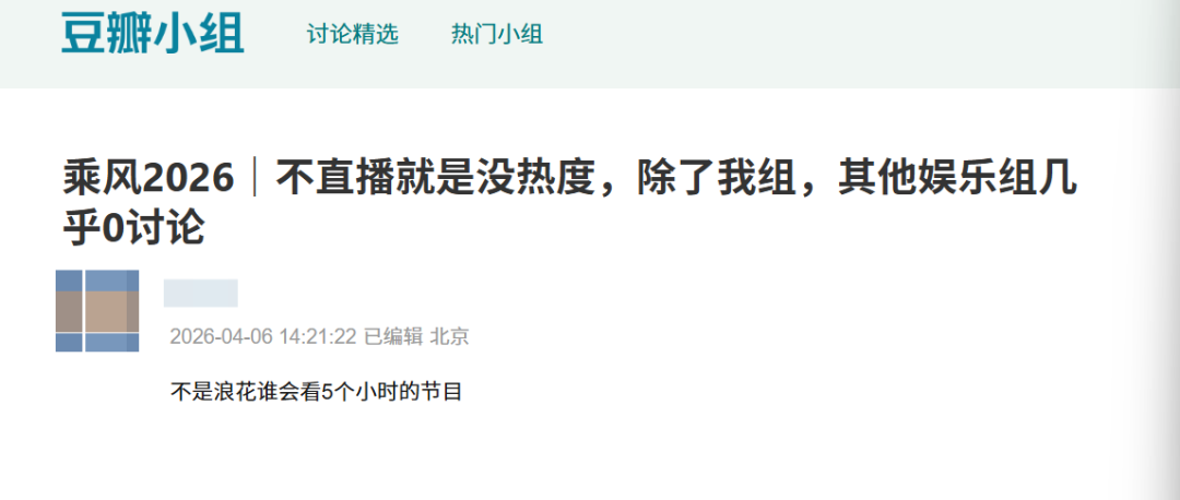 豆瓣小组网友的吐槽,似乎说出了直播转录播后人气下滑的原因:“果不其然,不直播热度骤降了。”“不直播就是没热度。”