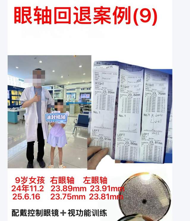 当发现自己盲目下单,跟风防控没用以后,她不再盲目求助家长群,而是带乐乐定期去医院复查,听从医生指导,慢慢让乐乐的眼轴增长放缓,三个月仅增长0.1mm,视力也从0.5提升至0.6,厌学走神的情况也彻底改善。
