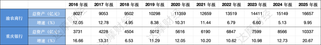 从二者规模扩张的脚步可以窥见不同的发展路径。本质上,渝农商行依托县域网点覆盖与涉农业务根基,走稳扎稳打、存量深耕路线;重庆银行则依托资源整合与重大项目投放能力,走弯道超车、增量突破路线,两种模式在2025年形成鲜明反差。