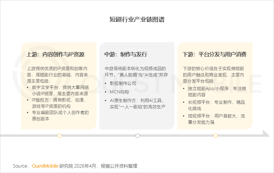 2、短剧产业日趋成熟,上游内容与IP奠定基石,中游技术驱动制作效率提升,下游分发渠道多点开花