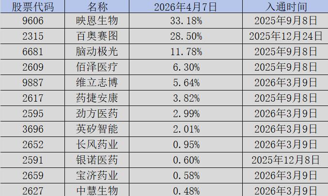 值得注意的是,并非新纳入港股通就会获得资金追捧。数据显示,在这批新标的中,仅有前五家公司的内资持股比例超过5%,获得了资金的初步认可;而长风药业、银诺医药、宝济药业、中慧生物的内资持股比例甚至跌至1%以下,几乎处于被市场忽视的状态。这一现象清晰表明,南下资金的筛选标准极为严苛,对于缺乏核心管线、商业化能力薄弱或赛道过窄的新标的,资金始终保持谨慎态度。