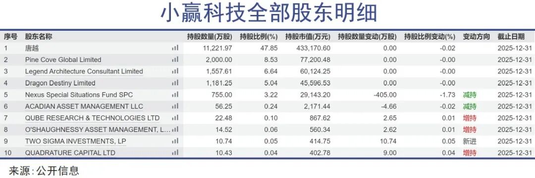 截至2025年末,唐越家族信托持有小赢科技约42.91%的股份,但他的投票权却高达惊人的91.5%,更何况他还曾经长期兼任董事长和CEO——唐越对控制权的看重可见一斑。