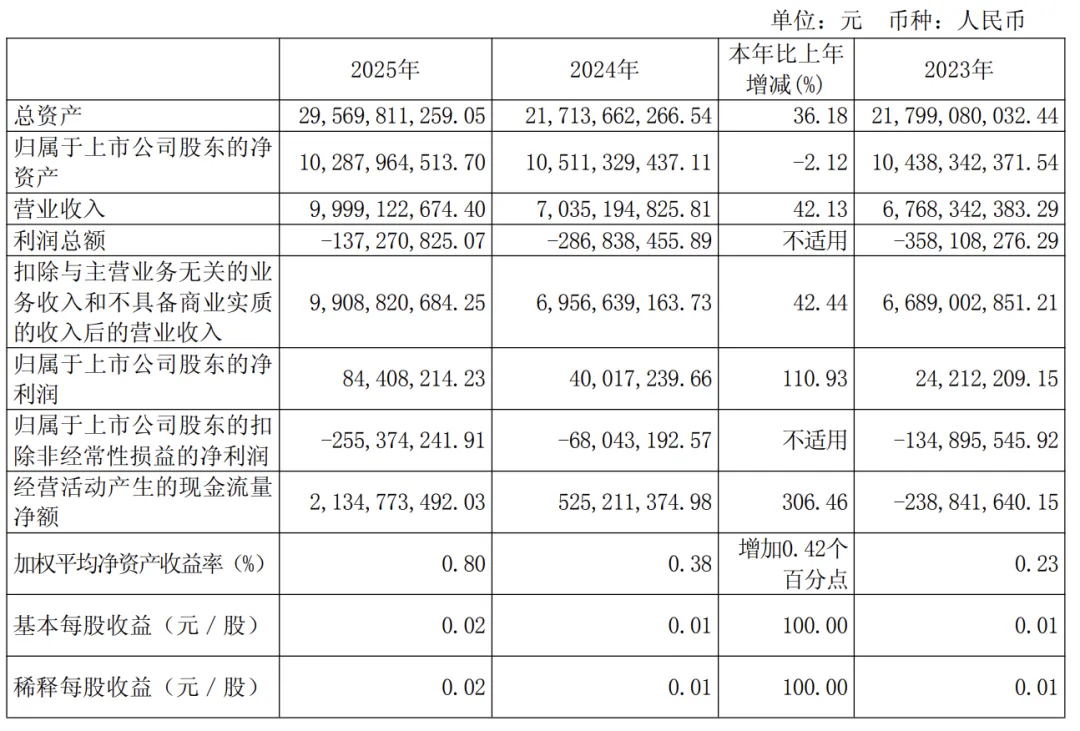 从财务数据到业务结构,这份年报呈现出几个鲜明的对比:营收逼近百亿,同比增长超四成;经营性现金流激增三倍,造血能力显著修复;科技业务首次实现独立收入,AI战略完成从0到1的突破。但与此同时,扣非净利润依然为负,母公司未弥补亏损高达9.48亿元,说明转型远未完成。