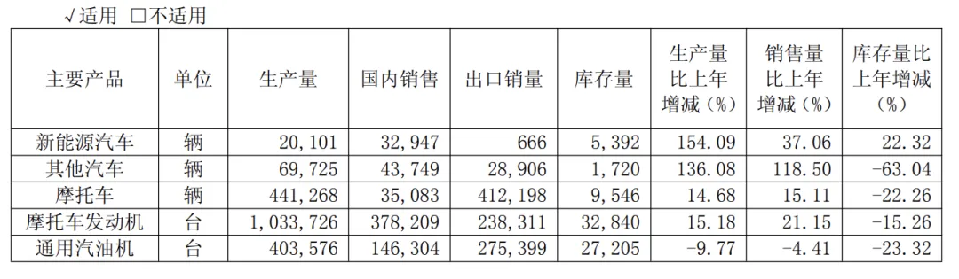 拆解收入结构可以发现,汽车业务全年收入64.4亿元,同比增长52.71%,是营收增长的最大贡献者;摩托车业务收入24.81亿元,同比增长15.92%;则科技业务首次单独列示收入3.5亿元,虽然占比不大,但标志着新增长点的出现。
