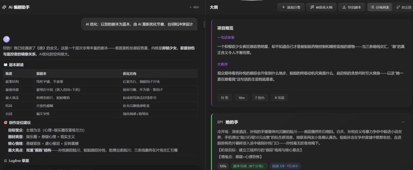 随着AI技术的持续迭代,语言模型的剧情理解能力、逻辑编排能力出现了质的飞跃,已能够轻松驾驭强冲突、强情绪、强结构的商业短剧创作,不再是“生硬堆砌剧情”,而是能精准把握短剧的节奏、爽点与情绪价值;