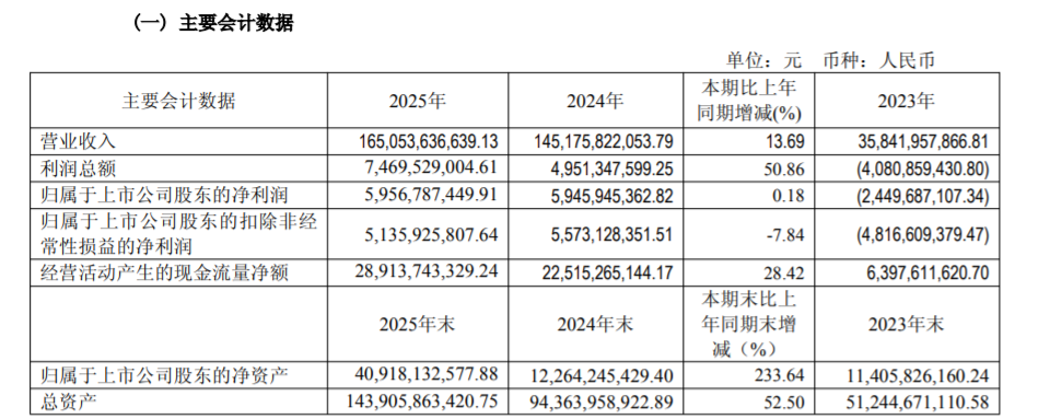 2025 全年营收 1650.54 亿元,创历史新高;归母净利润 59.57 亿元,同样也是历史新高,而且已经是连续两年盈利。