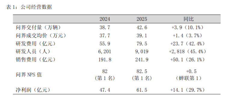 数据显示,2025 年,赛力斯集团的新能源汽车销量 47.2 万辆,同比增长了 10.6%;其中问界品牌全年交付了 42.6 万辆,同比增长 10.9%,占到了赛力斯新能源汽车总销量的 90% 以上。