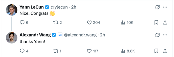 就连之前传闻与汪滔不和的Meta前首席科学家杨立昆(Yann LeCun)都赶来恭喜,气氛一片祥和。