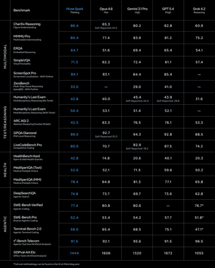 总体来看,Muse Spark在视觉多模态推理、医疗领域和高效推理上表现突出,尤其适合Meta自己的社交、内容和健康生态;但在纯编码和长链条自主任务上仍有追赶空间。