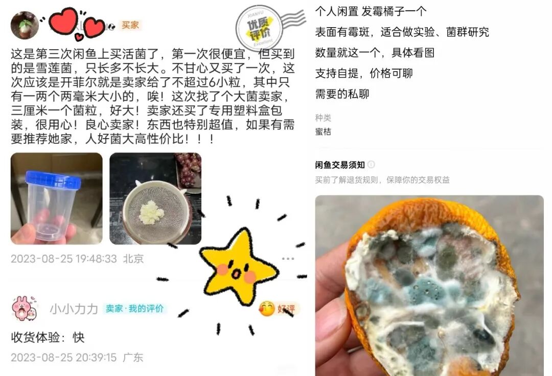 还有被期末作业逼疯了的研究生,眼看DDL要到了,愣是培育不出目标菌种,尝试性地上闲鱼搜“发霉”,没想到这里全是“民间高手”,几十元到上百元的价格,就能寄来各种品质的菌种。