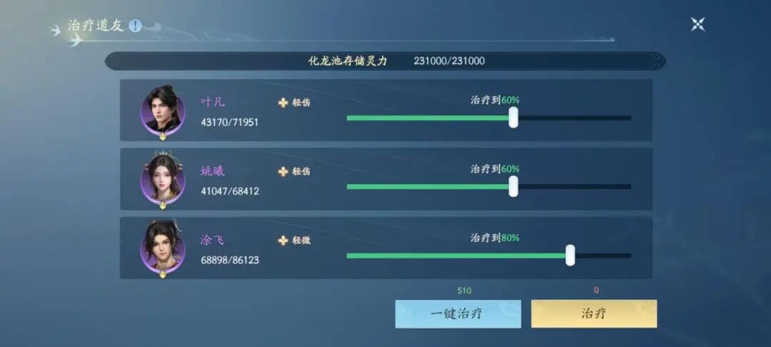那么《遮天世界》是怎么解决这个问题的?直接抛弃士兵的设计,将兵力变成灵力。战斗的队伍是SLG中常见的3人队伍,但并不带兵,玩家在大地图上战斗损失的是灵力。灵力由「化龙池」这个建筑随时间生产,可以消耗游戏货币快速生产。