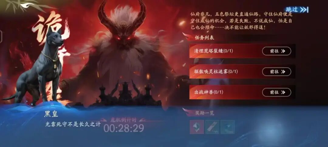值得一提的是,游戏开始也有一个30分钟的倒计时任务设计「诡异来袭」,这个设计在同类游戏《无尽冬日》等中也有。