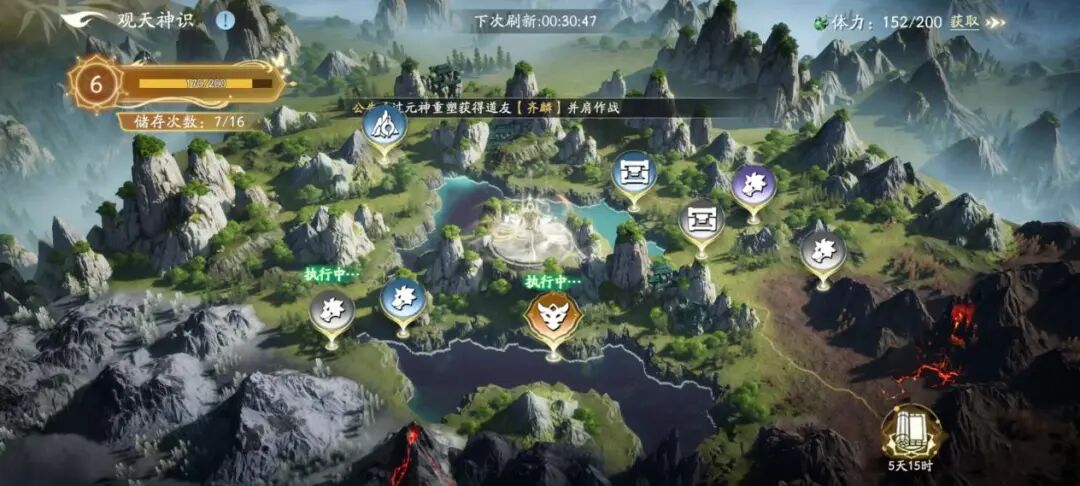 一是「观天神识」,这个就是每个专属玩家专属的资源点和怪物,玩家需要消耗体力进行攻打或收集。这些资源点和怪物也是分布在大地图上,不过可以通过专属页面一键跳转。