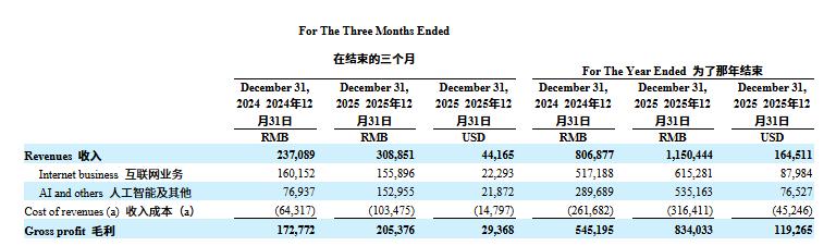 这意味着,AI业务短期不仅无法实现自我造血,还要继续依靠互联网业务的现金流持续输血。