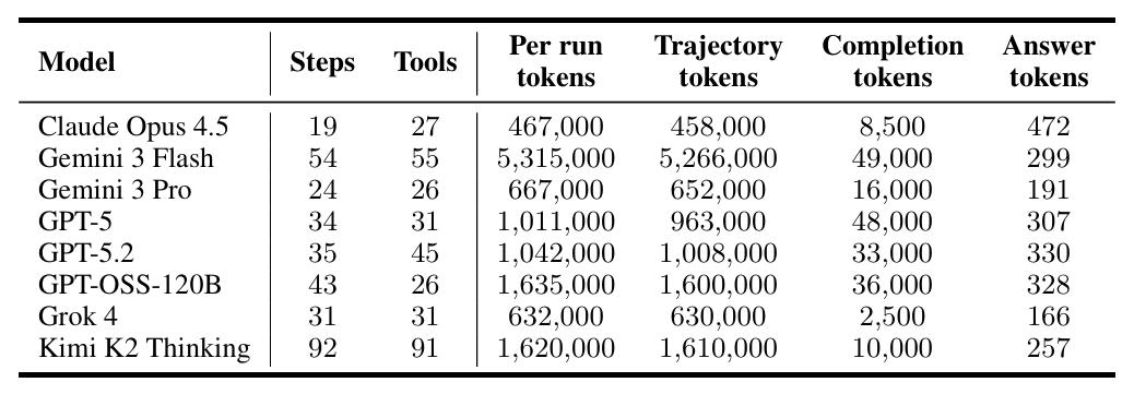 以24%的Pass@1分数领跑的Google最新模型Gemini 3 Flash单次任务平均消耗的token达到了531.5万,大约是GPT-5.2的5倍、Gemini 3 Pro的8倍。