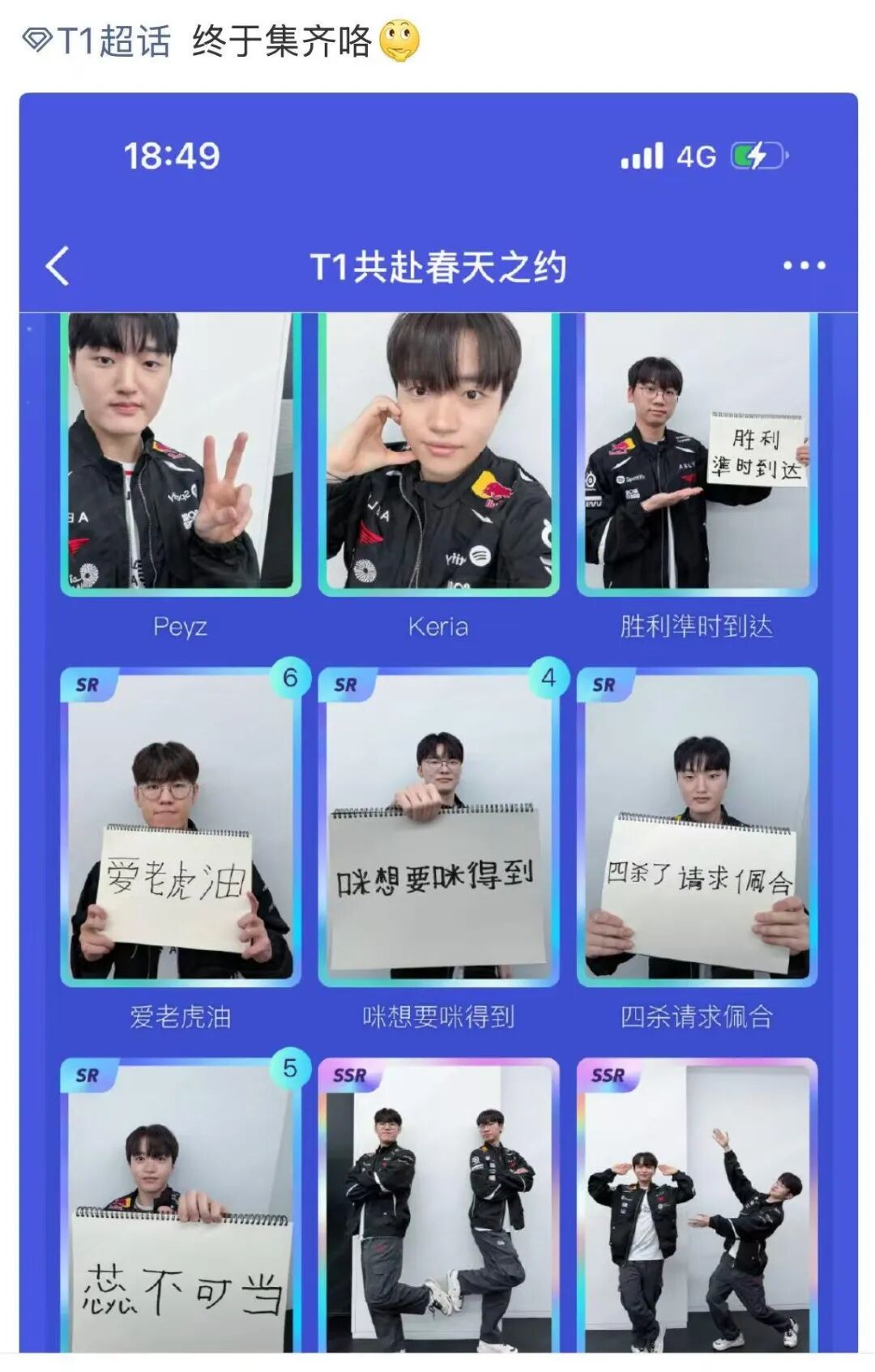 围绕这次入驻和首波周边发售,T1并没有只是简单官宣一下、把商品挂出来,而是先做了一轮更完整的预热。3月27日起,T1就在超话里上线了集卡活动,用抽卡、集卡、晒卡这些更轻量的互动,把粉丝的讨论和情绪先带起来。