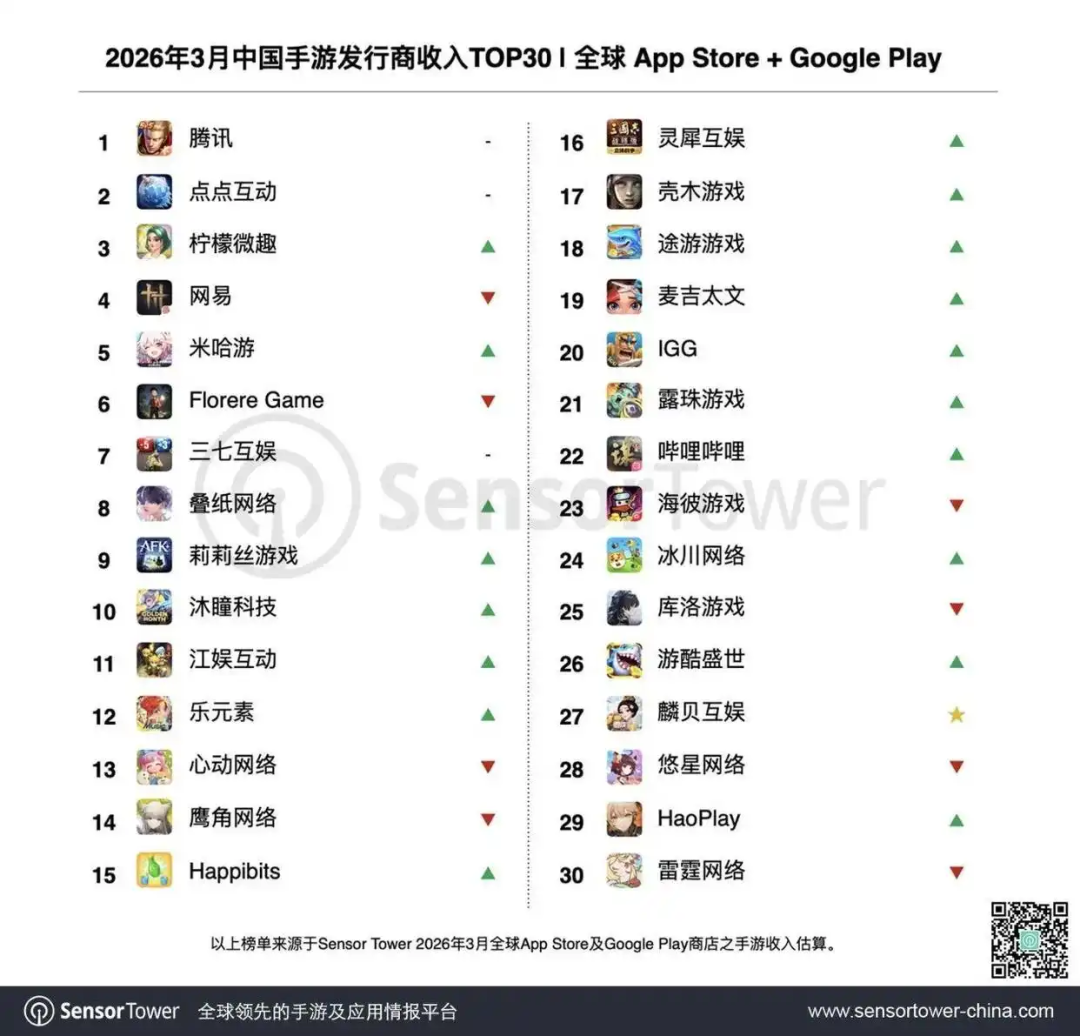 3月,三七互娱收入环比上涨28%,位列全球第7。最大功臣《Last Asylum: Plague》,凭借新颖题材和副玩法,本期收入暴涨近11倍,成为2026年全球化现象级力作。
