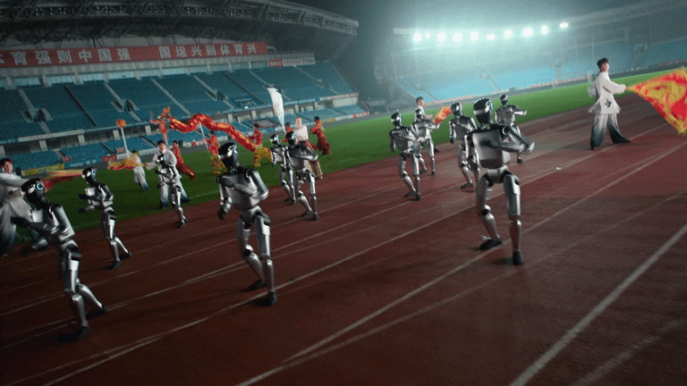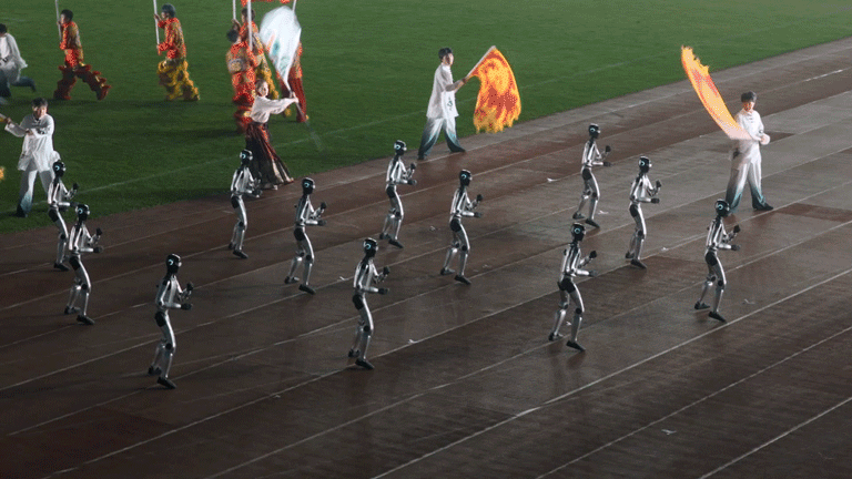 与央视春晚的室内环境不同,此次演出直面户外体育场的多重极端条件:持续降雨导致草坪湿滑、通信信号衰减、机器人本体与传感器面临防水与抗干扰的严峻考验;作为开幕式核心环节面向全国实时播出,要求表演必须百分之百成功,不容任何单点故障或动作延迟。