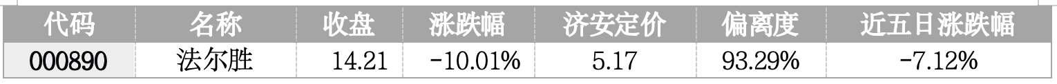 风险提示:收盘价相对济安定价 27.67 元,偏离度 61.18%,估值仍存在溢价,受资金退潮与基本面支撑不足影响,短期继续面临震荡调整风险。