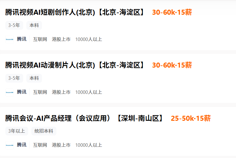 腾讯部分AI岗位