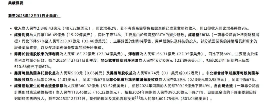 2026财年第三季度财报 图源:阿里集团官网