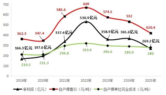 2019-2025年陕西煤业重要经营数据对比图;数据来源:公司公告,2025年自产煤成本数据用半年报数据替代