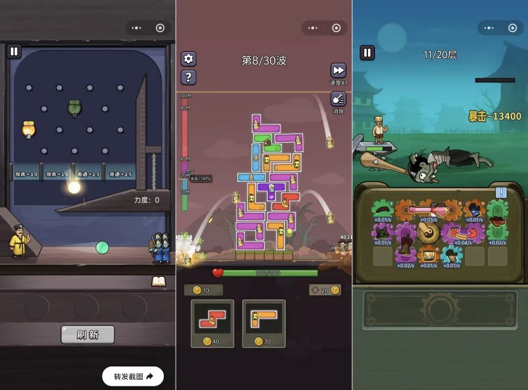 值得一提的是,在主线关卡之外,该游戏还通过“更多玩法”模块,加入了背包齿轮、弹珠、俄罗斯方块等更多热门玩法。这些热门元素的加入,不仅仅能够给玩家提供更多玩法选择,增加游戏内容的丰富度,更为游戏获量,提供了更多素材制作方向。