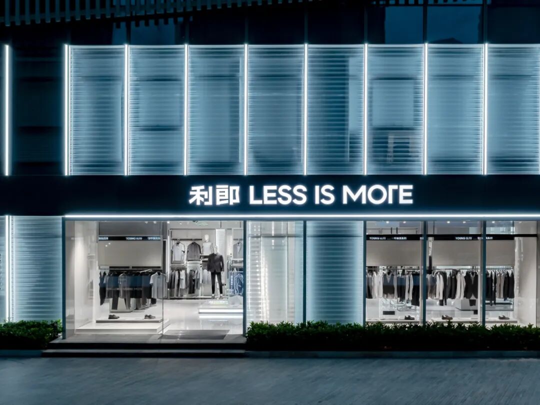 早在2016年,利郎就推出了LESS IS MORE轻商务系列,试图在主品牌之外,用一个全新的身份去接触年轻消费者。2020年前后,这一系列瞄准一二线及经济强市的20-40岁年轻群体,精准切入“青年商务装”空白赛道。截至2025年底,LESS IS MORE已开出371家门店,全部采用直营模式,集中在年轻消费者偏好的购物中心。