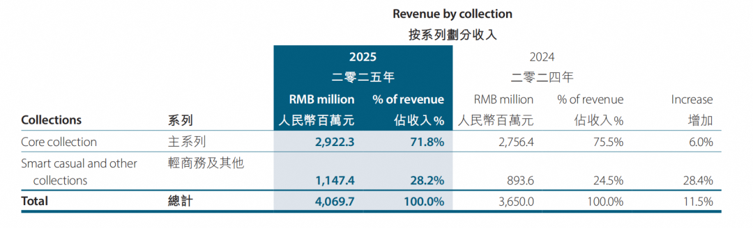2025年,利郎LILANZ主系列收入同比增长6.0%至29.22亿元(图源:利郎官网)