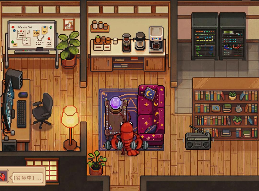 我们让这些小龙虾都来找一个技能——前段时间很火的“龙虾办公室”可视化项目,你可以通过这个办公室界面,看到小龙虾是在办公、思考还是坐在沙发前摸鱼。QClaw由于自带这个功能,跳过本次测试。