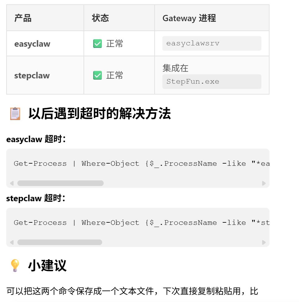 但从稳定性和自我修复的能力上评断,其中一些产品出现了明显的问题。比如EasyClaw、StepClaw都在我使用的时候出现过报错,前者没有“网关重启”的设置给我启动,后者虽然主推能拿阶跃自己的Agent助手“修理”StepClaw,但我多次尝试的效果并不好。