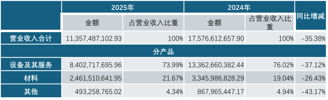 以前以及现来,晶盛机电的设备营收和利润都大于材料。2025年设备及其服务营收为84亿元,占公司营收比重73.99%。