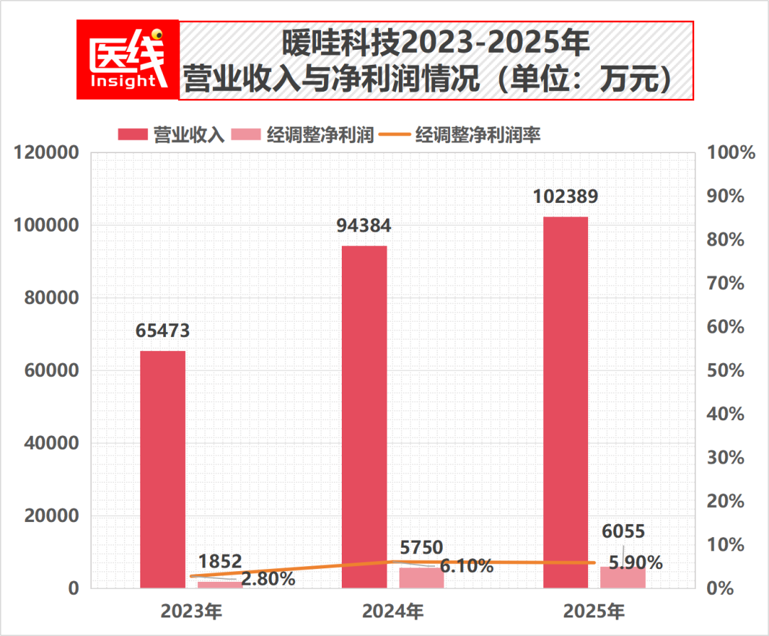 在非国际财务报告准则下,暖哇科技的“经调整净利润”在2023年、2024年和2025年分别为1851万元、5750万元和6055万元。