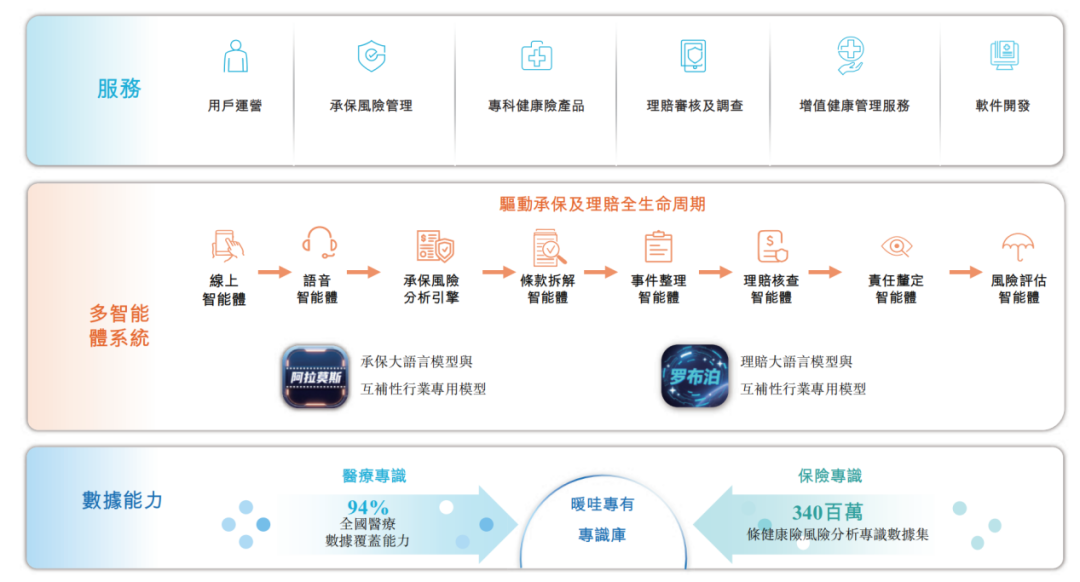 更为关键的是,它是中国健康险领域首家且唯一具备“全栈风险分析能力”的AI驱动科技公司,其服务贯穿了从产品设计、承保风控、理赔管理到保单服务的保险交易全生命周期。