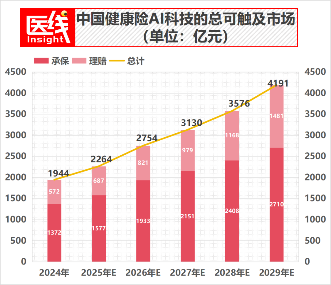 这正是暖哇科技瞄准的“星辰大海”。根据弗若斯特沙利文报告,中国健康险AI科技的总可触及市场规模预计将从2024年的1944亿元人民币,增至2029年的4191亿元。